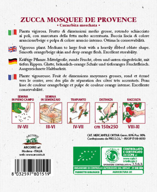 Pumpafrö ZUCCA MOSQUEE DE PROVENCE, ekologiskt